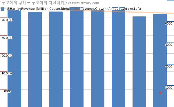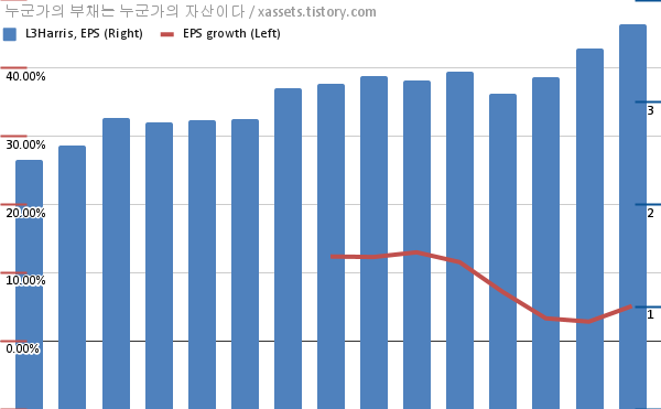 - 포스팅일 기준, L3해리스의 1년 연평균 EPS 성장률은 5.10%이다.