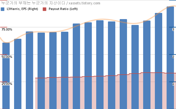 - L3해리스는 2002년부터 21년 연속으로 배당금을 증액하고 있다.