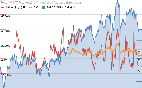 - 포스팅일 기준, SAP SE의 1, 3, 5, 10년 연평균 주가상승률은 -9.24%, 1.09%, 3.42%, 4.96%이다.