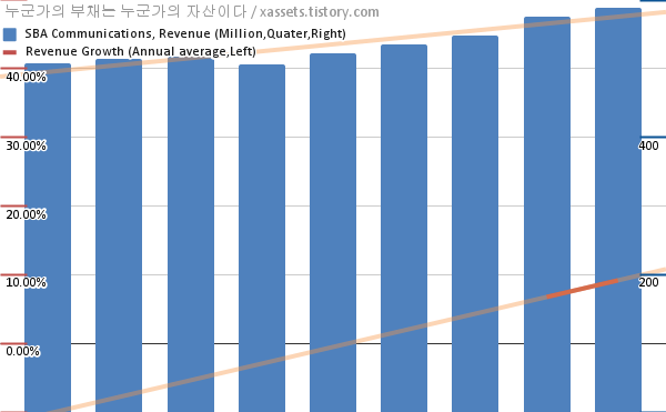 SBA 커뮤니케이션스 매출 성장률 차트 (2019년~2021년)