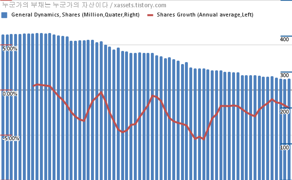 제너럴 다이내믹스 자사주 매입 차트 (2005년~2021년)