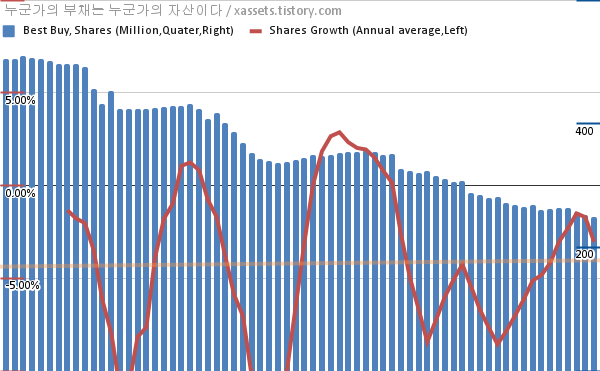 베스트 바이 자사주 매입 차트 (2005년~2021년)