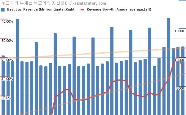 베스트 바이 매출 성장률 차트 (2012년~2021년)