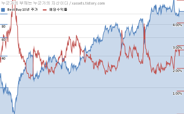베스트 바이 배당수익률 및 주가 상승률 차트 (2012년~2022년)