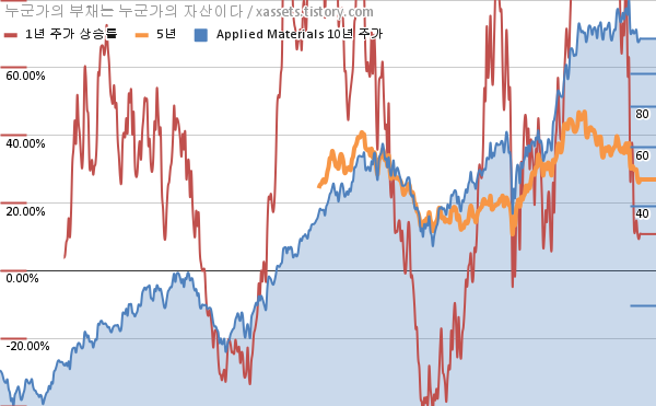 - 포스팅일 기준, 어플라이드 머티어리얼즈의 1, 3, 5, 10년 연평균 주가상승률은 9.34%, 45.72%, 26.05%, 25.70%이다.