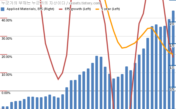 - 포스팅일 기준, 어플라이드 머티어리얼즈의 1, 5년 연평균 EPS 성장률은 18.37%, 20.10%이다.