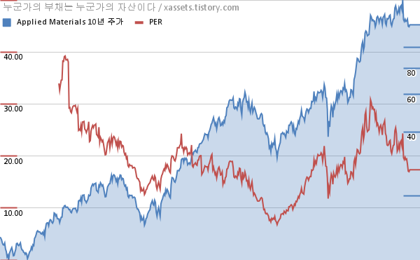 어플라이드 머티어리얼즈 PER 차트 (2012년~2022년)
