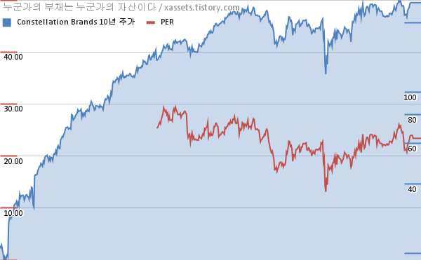 콘스텔레이션 브랜드 PER 차트 (2012년~2022년)