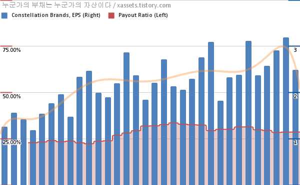 - 콘스텔레이션 브랜드는 2016년부터 7년 연속으로 배당금을 증액하고 있다.