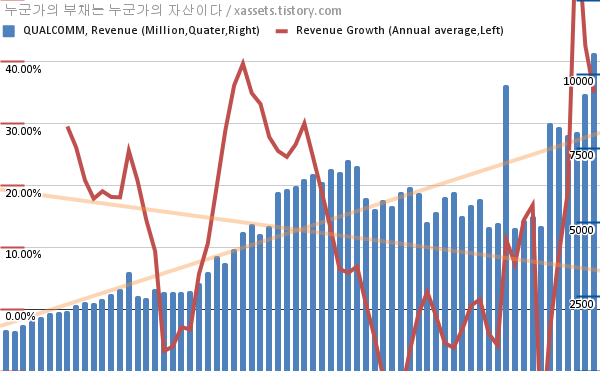 퀄컴 매출 성장률 차트 (2005년~2021년)
