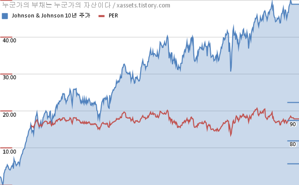 존슨앤존슨 PER 차트 (2012년~2022년)