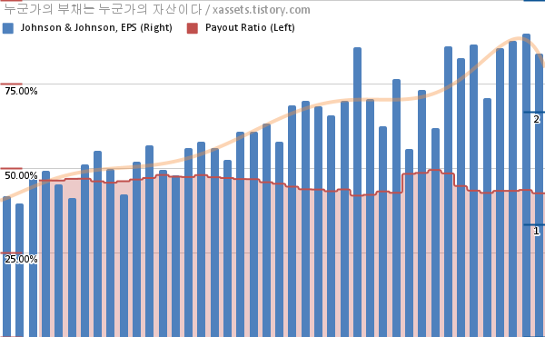 존슨앤존슨 EPS 성장률, 배당성향 차트 (2012년~2022년)