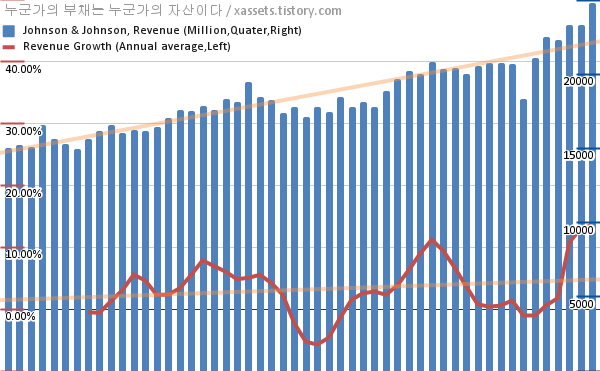 존슨앤존슨 매출 성장률 차트 (2009년~2021년)