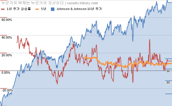 - 포스팅일 기준, 존슨앤존슨의 1, 3, 5, 10년 연평균 주가상승률은 10.89%, 9.37%, 8.12%, 10.74%이다.