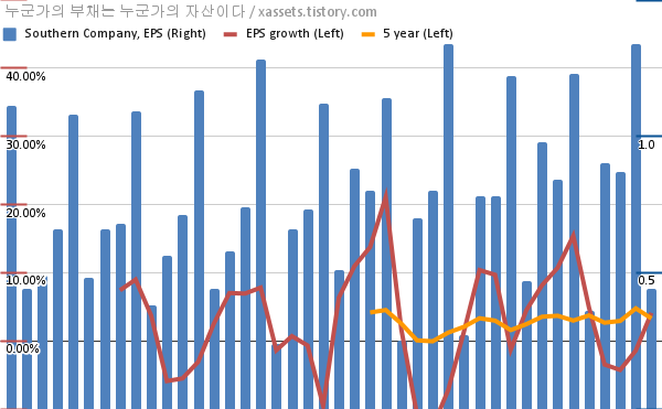 - 포스팅일 기준, 서던 컴퍼니의 1, 5년 연평균 EPS 성장률은 4.11%, 3.29%이다.