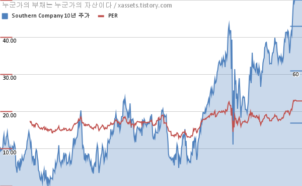 서던 컴퍼니 PER 차트 (2012년~2022년)