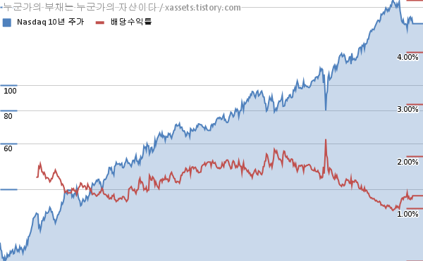 - 나스닥은 2013년부터 10년 연속으로 배당금을 증액하고 있다.