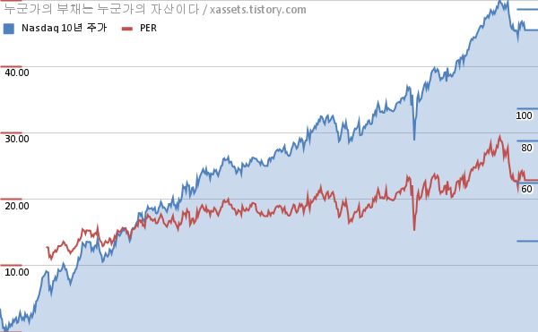 나스닥 PER 차트 (2012년~2022년)
