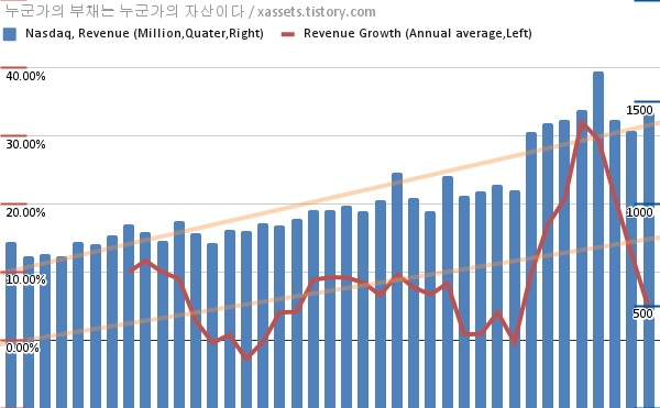 나스닥 매출 성장률 차트 (2012년~2021년)