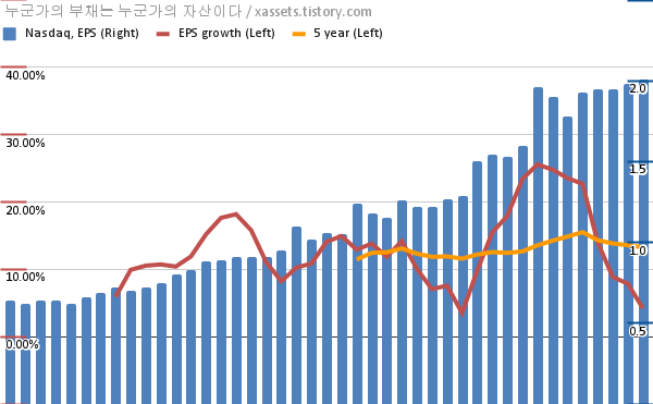 - 포스팅일 기준, 나스닥의 1, 5년 연평균 EPS 성장률은 4.23%, 13.28%이다.