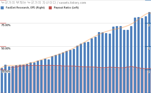 팩트셋 리서치 EPS 성장률, 배당성향 차트 (2012년~2022년)