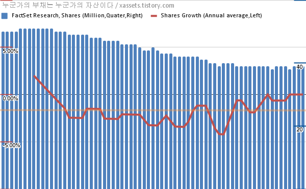 팩트셋 리서치 자사주 매입 차트 (2005년~2022년)
