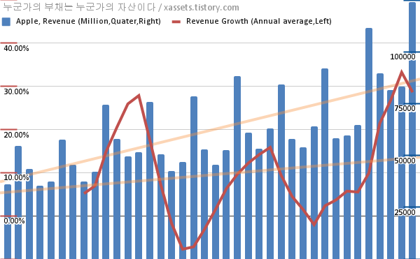 애플 매출 성장률 차트 (2012년~2021년)