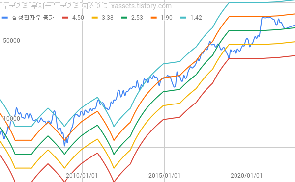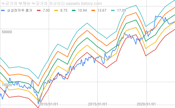- 분기별 삼성전자 Samsung Electronics 밴드차트 ( PBR PER 배당수익률 ) 목록
