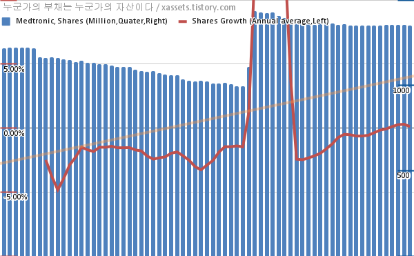 메드트로닉 자사주 매입 차트 (2005년~2022년)