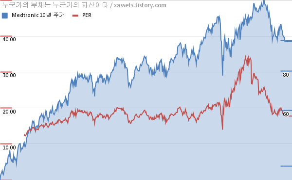 메드트로닉 PER 차트 (2012년~2022년)