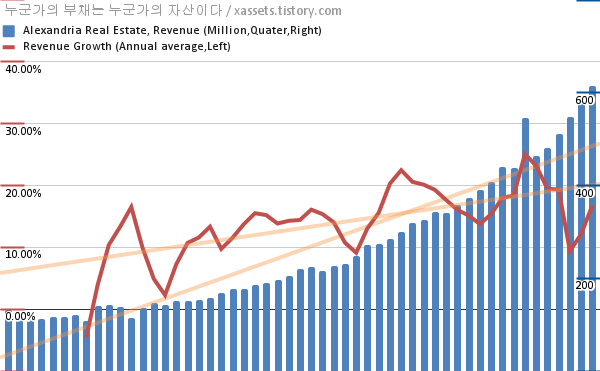- 포스팅일 기준, 알렉산드리아 부동산의 1년 연평균 FFO 성장률은 8.25%이다.