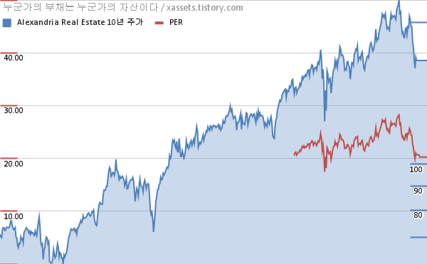 알렉산드리아 부동산 PER 차트 (2012년~2022년)