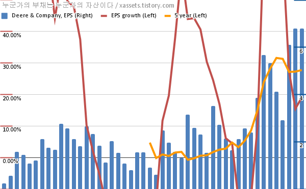 - 포스팅일 기준, 디어 & 컴퍼니의 1, 5년 연평균 EPS 성장률은 19.06%, 27.77%이다.