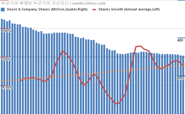 디어 & 컴퍼니 자사주 매입 차트 (2005년~2022년)