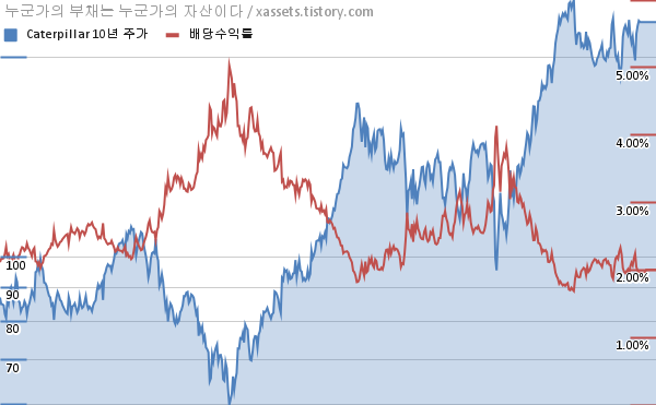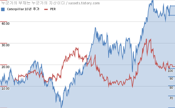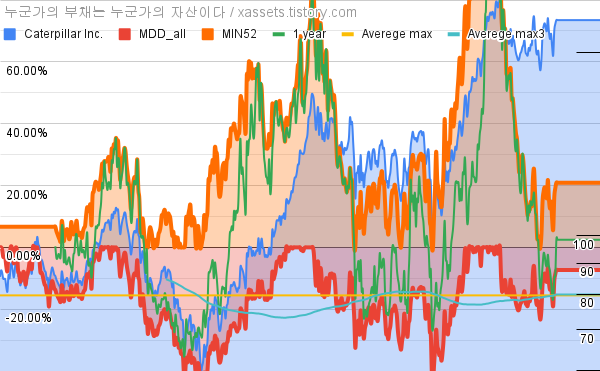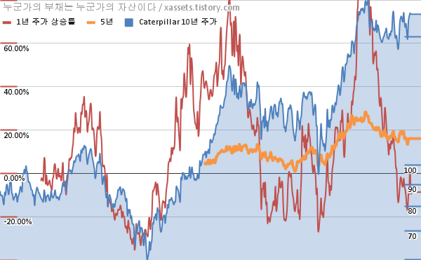 - 포스팅일 기준, 캐터필러의 1, 3, 5, 10년 연평균 주가상승률은 -8.66%, 21.44%, 16.04%, 9.87%이다.