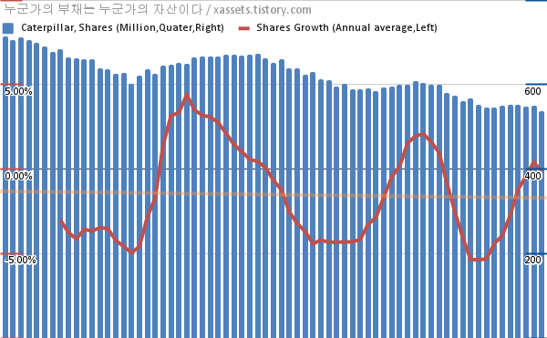 캐터필러 자사주 매입 차트 (2005년~2022년)