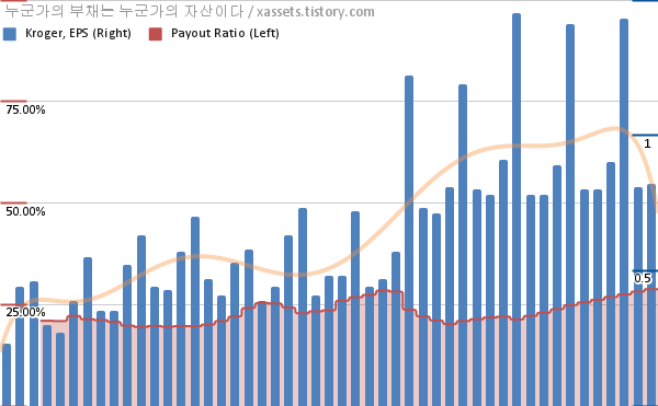 크로거 EPS 성장률, 배당성향 차트 (2012년~2024년)