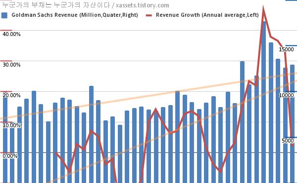 골드만삭스 매출 성장률 차트 (2012년~2022년)