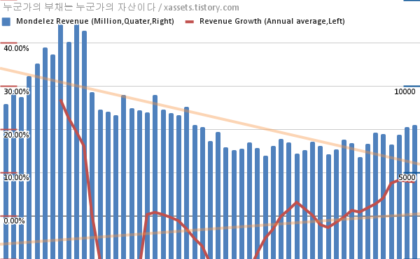 몬델리즈 매출 성장률 차트 (2009년~2022년)