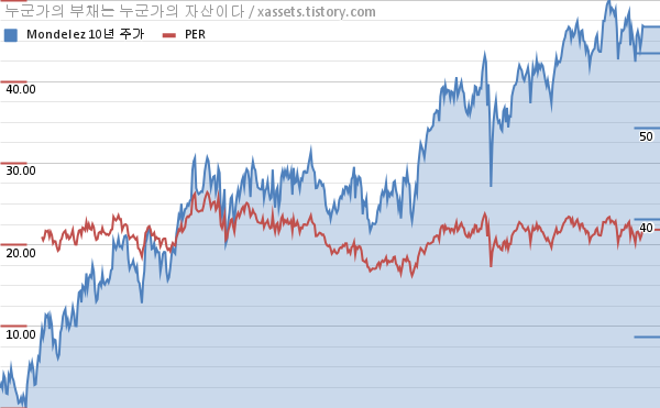 몬델리즈 PER 차트 (2012년~2022년)