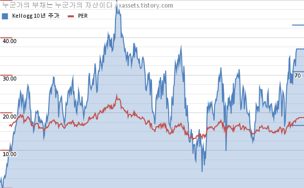 켈로그 PER 차트 (2012년~2022년)