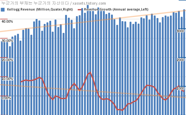 켈로그 매출 성장률 차트 (2005년~2022년)