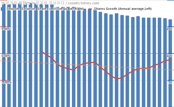 스카이웍스 솔루션스 자사주 매입 차트 (2014년~2022년)