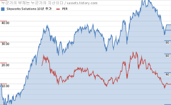 스카이웍스 솔루션스 PER 차트 (2012년~2022년)