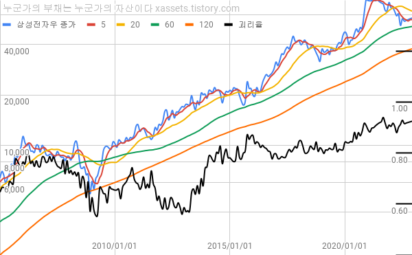 2022년 2분기 삼성전자 주가 및 우선주 괴리율 차트 Samsung Electronics Stock Price chart