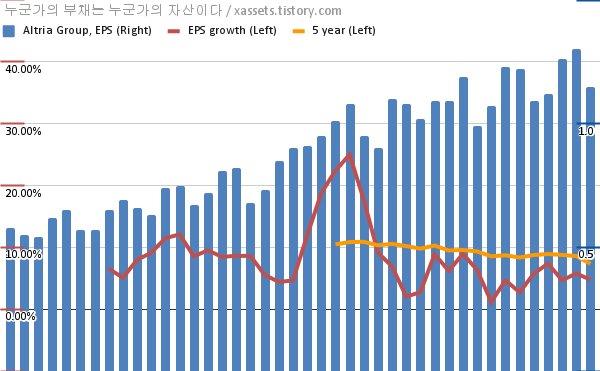 - 포스팅일 기준, 알트리아 그룹의 1, 5년 연평균 EPS 성장률은 4.77%, 7.34%이다.