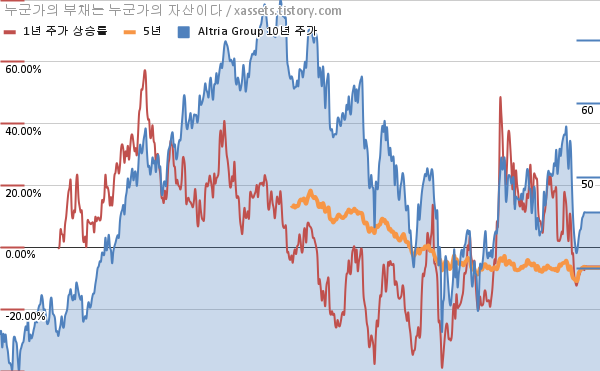 - 포스팅일 기준, 알트리아 그룹의 1, 3, 5, 10년 연평균 주가상승률은 -7.37%, 1.60%, -6.31%, 2.96%이다.