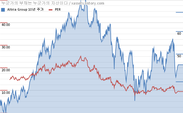 알트리아 그룹 PER 차트 (2012년~2022년)