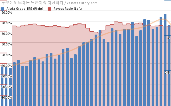 알트리아 그룹 EPS 성장률, 배당성향 차트 (2012년~2022년)