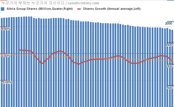 알트리아 그룹 자사주 매입 차트 (2005년~2022년)